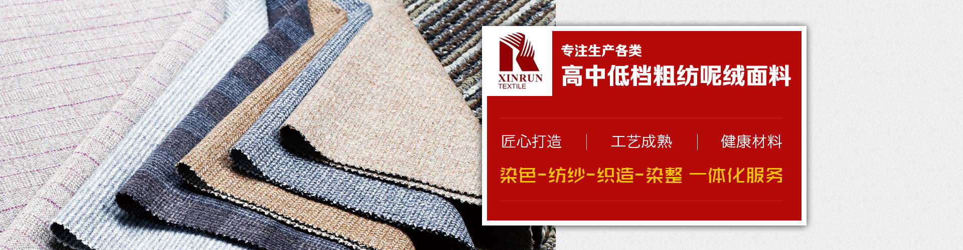 上海鑫潤紡織品有限公司是一家從事開發(fā),生產(chǎn),銷售為一體的毛紡面料公司,公司生產(chǎn)各類高中低檔粗紡呢絨面料,并下轄控股毛紡廠3家,擁有先進的生產(chǎn)設備和的管理體系,不僅在國內(nèi)市場享有良好地信譽,而且產(chǎn)品遠銷美國,歐洲,俄羅斯,韓國,日本等不同國家,贏得了國外市場的一致好評。憑借優(yōu)良的品質(zhì),良好的信譽,我公司還是ZARA,H&M,C&A,JACK&JONES,MANGO,TARGET,PROMODE,ORSAY等國外知名品牌的供應商。